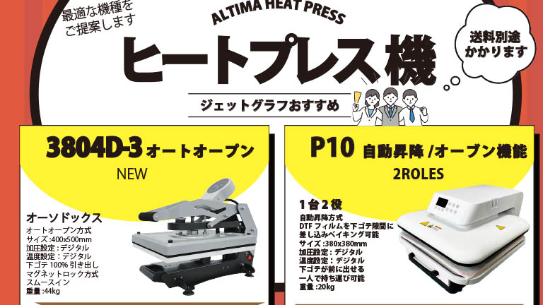 福岡には、Latex/プリント&カット/DTG&DTF/プレス機/昇華/UV/シルクと各機種が展示。機種比較が行えます